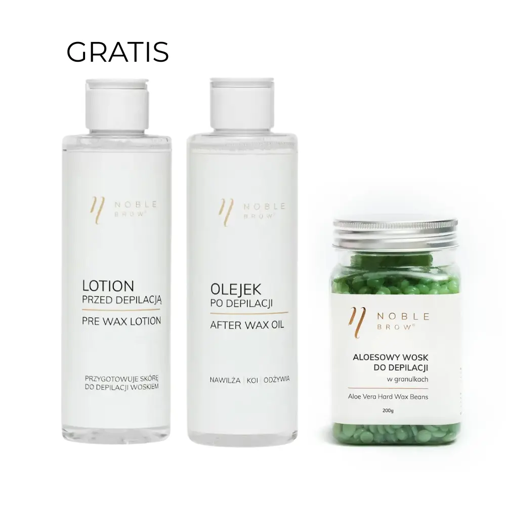 Цей набір — це комплексний догляд за шкірою до і після воскової депіляції — ідеальний для щоденного домашнього використання, а також для професійного застосування в салонах краси. Поєднання натуральних властивостей алое з ефективними засобами догляду робить депіляцію простішою, швидшою та комфортнішою, навіть для чутливої шкіри.
