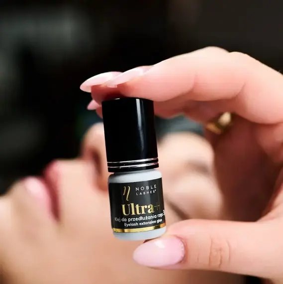 Клей для вій Ultra+ з інтернет-магазину Noble Lashes рекомендується передусім початківцям майстриням, які лише набираються досвіду у виконанні таких процедур. Завдяки його рідкій, повільніше висихаючій консистенції процедура може виконуватися в спокійному та розміреному темпі. З цим клеєм ви можете дозволити собі виправити напрямок штучної вії. Завдяки міцному та довготривалому з’єднанню правильно виконане нарощування може триматися навіть до 10 тижнів. Клей не рекомендується для чутливих очей.