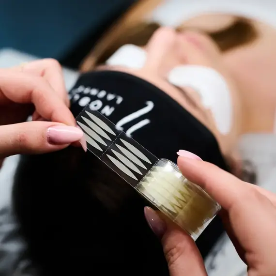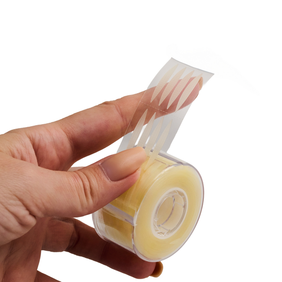 Lash Tip: Обережно зніміть смужку стрічки та наклейте її трохи вище складки повіки, злегка натягнувши шкіру. Це допоможе підняти повіку та забезпечить кращий доступ до вій під час процедури.